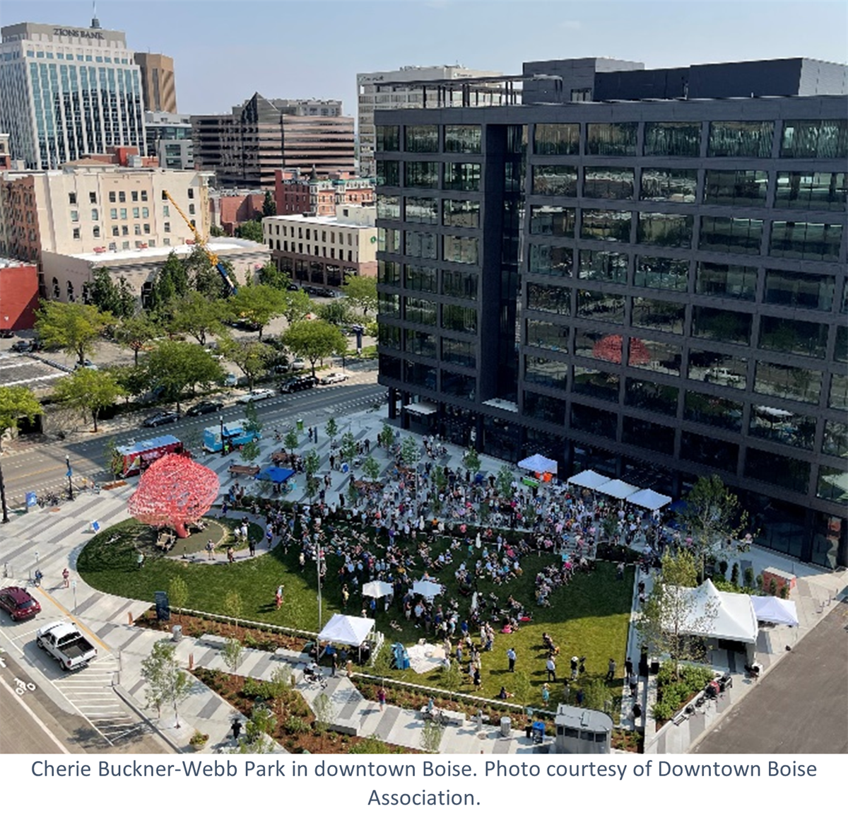 DTPlays is an electric cargo bike that will carry a variety of outdoor games, chairs, shade tent, water station and more to Cherie Buckner-Webb Park in Downtown Boise. ““We’re so very excited to bring a new activation to our downtown that invites everyone to PLAY,” said Jenn Hensley, Executive Director at Downtown Boise Association. Throughout the summer, community members of all ages will be able to meet, socialize, and engage in fun activities together in a beautiful park setting in the heart of the city using the supplies transported with the bike. “These free pop-ups are our answer to responses received from Treasure Valley residents through a 2021 survey asking for more family-friendly, free fun during daytime hours,” said Hensley. “What’s more fun than hula hoops, bubbles, yard games, and hands-on activities in the park?!” This environmentally friendly micro-mobility solution will engage the community while promoting sustainability.