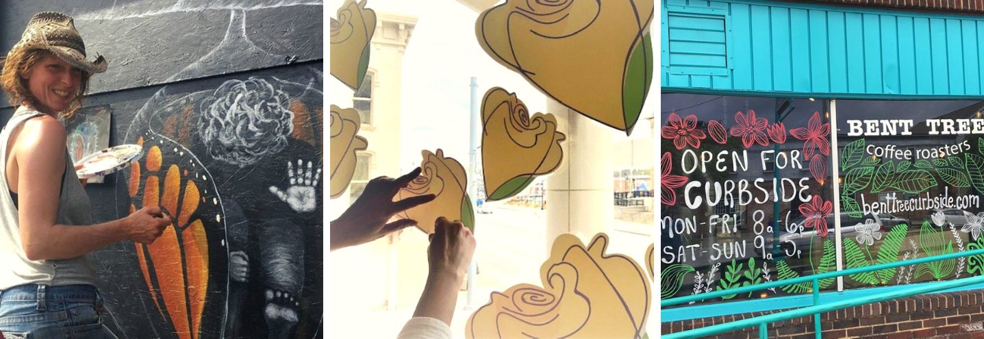Colorful Open Hours. Quickly communicating how and when businesses are open is key to reopening safely. Main Street Kent in Kent, Ohio, showcased one great example of this on the windows of Bent Tree Coffee Roasters. A new window display of large letters written in colorful window paint makes it easy for those walking or driving by to know the new hours of this local business as well as how they can pick up their coffee. See their windows here. At the time of this writing, Ohio has opened restaurants and bars for outdoor dining.