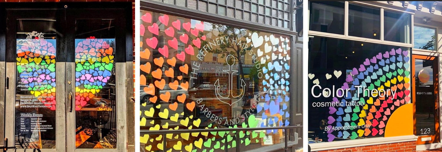 Businesses participating in #AWorldOfHearts around West Chester, Pennsylvania. (Photo Credit: Downtown West Chester)