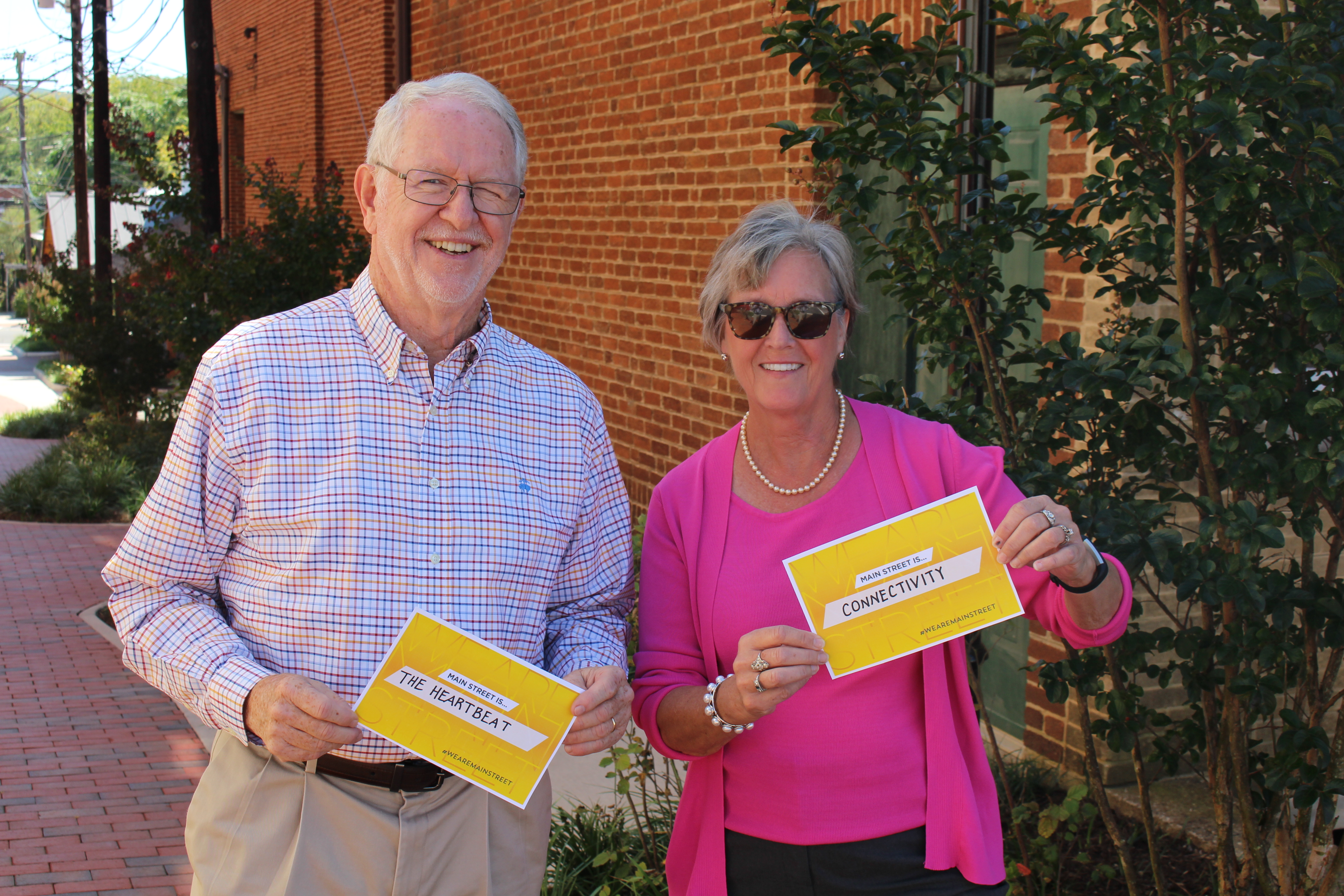 Mark Bloomfield, Co-Founder of Bloomfield Partners, and Mayor Beth Taylor of Wytheville, VA proudly display their #WeAreMainStreet postcards.