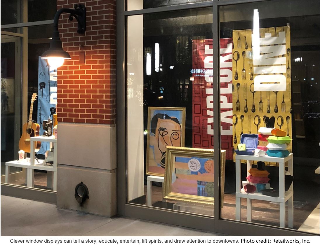 A vacant storefront is the perfect stage to creatively promote the available space or to showcase other businesses and events in the area. Furthermore, clever window displays can tell a story, educate, entertain, lift spirits, and draw attention to downtowns. It’s time to transform these blank canvases into attractive and engaging windows displays through a visual storefront campaign.