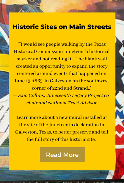 Main Street communities across the nation are celebrating Juneteenth, the oldest national commemoration of the ending of slavery in America and the nation’s newest federal holiday! On June 19th, 1865, Union soldiers led by Major General Gordon Granger landed at Galveston, Texas, with news that the Civil War had ended and that enslaved Black people were now free. (Note this was two and a half years after President Lincoln’s Emancipation Proclamation – which had become official January 1, 1863.)