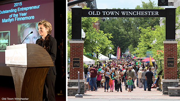 With the support of the Old Town Development Board, City Council also entered into a contract in 2012 with a Special Events Promoter to begin a series of nine new major events and develop a new brand for the downtown. Marilyn played a key role in the rebranding and has remained a stalwart champion for the downtown. These changes have led to a dramatic transformation within Old Town Winchester which has spurred more private investment, many new businesses opening and increased tax revenue. in fact, meals tax data shows $4 million more was spent in downtown restaurants in Winchester in 2015 compared to 2012.