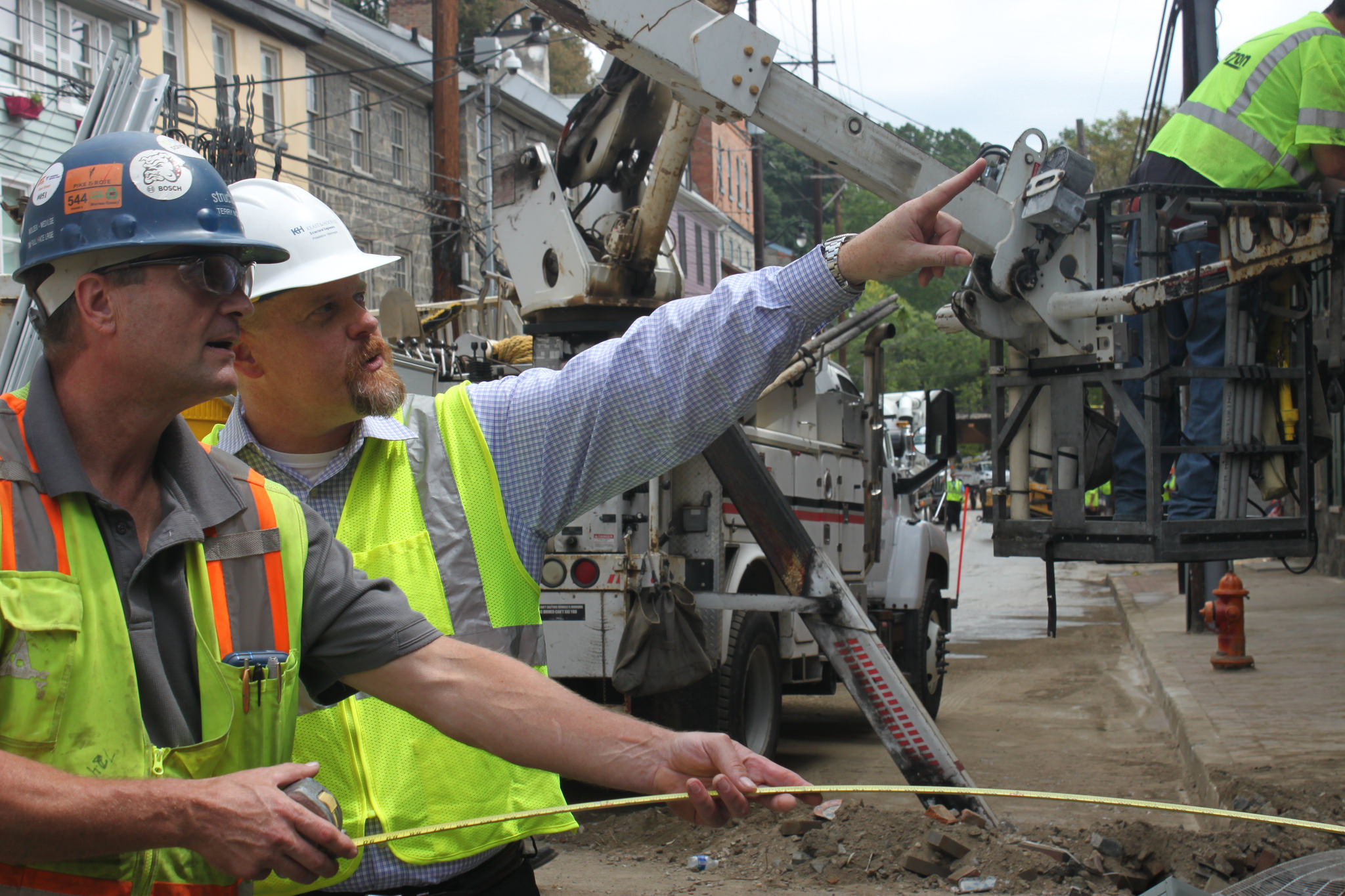 Ellicott City Flood Recovery | Mat Daw of Keast & Hood Structural Engineers meets with representatives of the Structural Group to plan the stabilization of these structures.