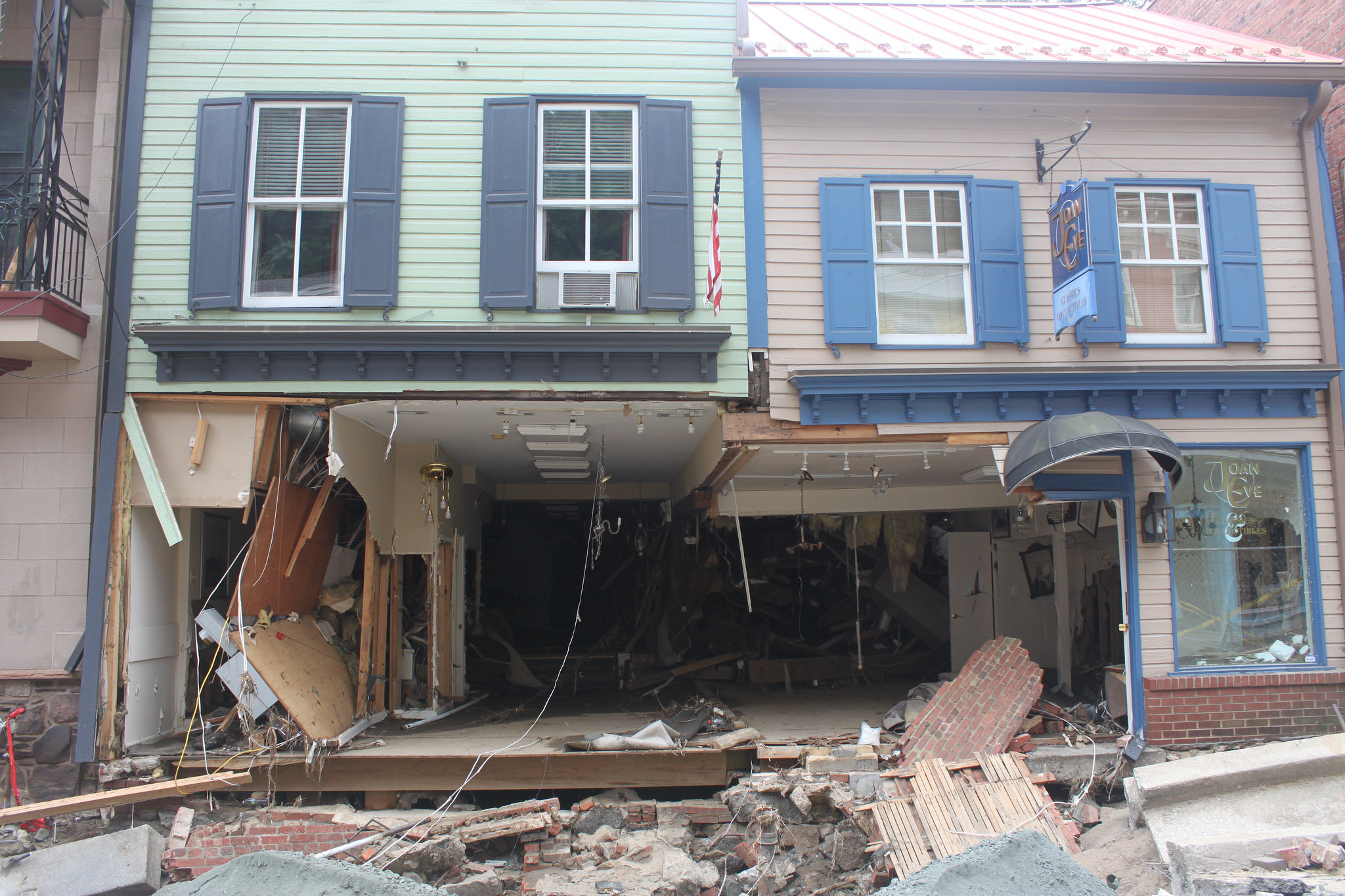 Ellicott City Flood Recovery | The historic structures requiring stabilization -- they are missing the supporting wall and load bearing columns.